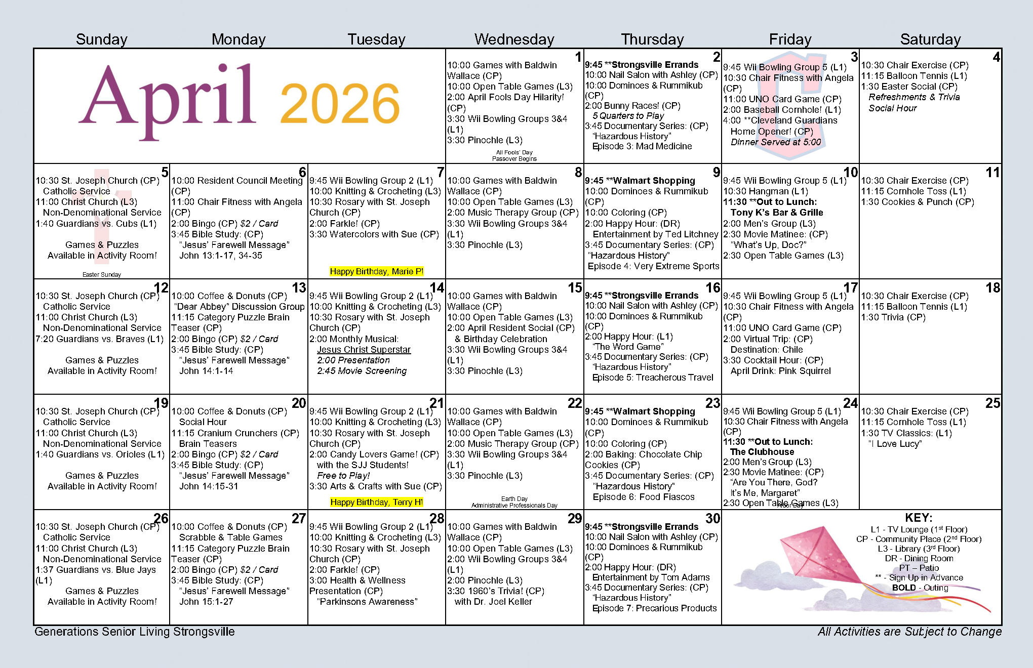 Wonder what we have planned this week? View our weekly calendar to discover our fun and engaging activities. We’re always planning programs and activities that stimulate and engage your mind, body, and spirit.